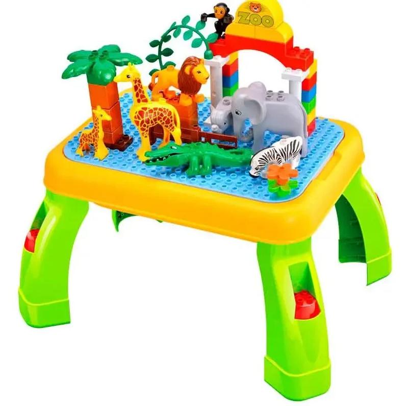 Игровой стол с конструктором (стол-конструктор) зоопарк 55 крупных деталей (3688a )