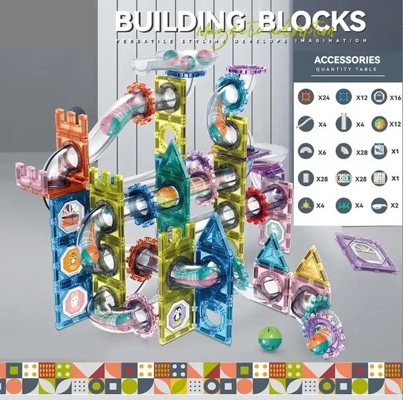 Магнитный детский конструктор трек с трубопроводом и шариками (172 детали) (6620 a)