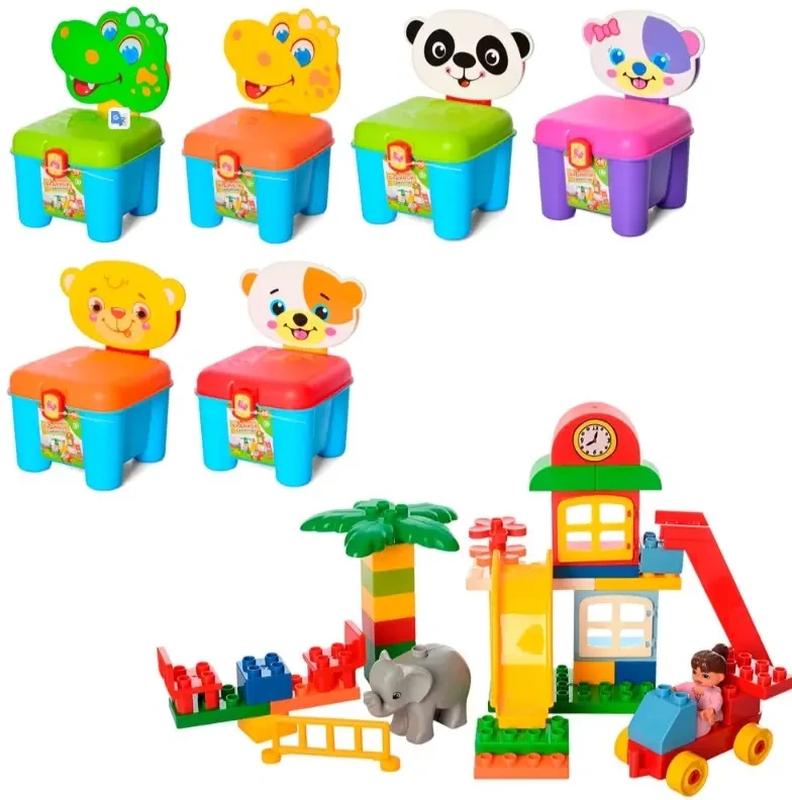 Необычный конструктор сразу заинтересует деток своим нестандартным оформлением. Все детальки конструктора спрятаны в чемоданчик в виде стульчика, на спинке которого нарисована забавная мордочка. Конструктор состоит из 46 деталей, собрав которые ребенок получит игровую площадку с милым слоником. Все детали сделаны из прочного пластика и окрашены в яркие цвета, поэтому ребенок будет максимально увлеченно играть, развивая при этом мелкую моторику рук и усидчивость. После игр детали конструктора можно обратно поместить в чемоданчик, который отлично впишется в интерьер детской комнатки. Габариты стульчика высота (учитывая спинку) 35см, ширина 22 см. Упаковка: чемодан-стул