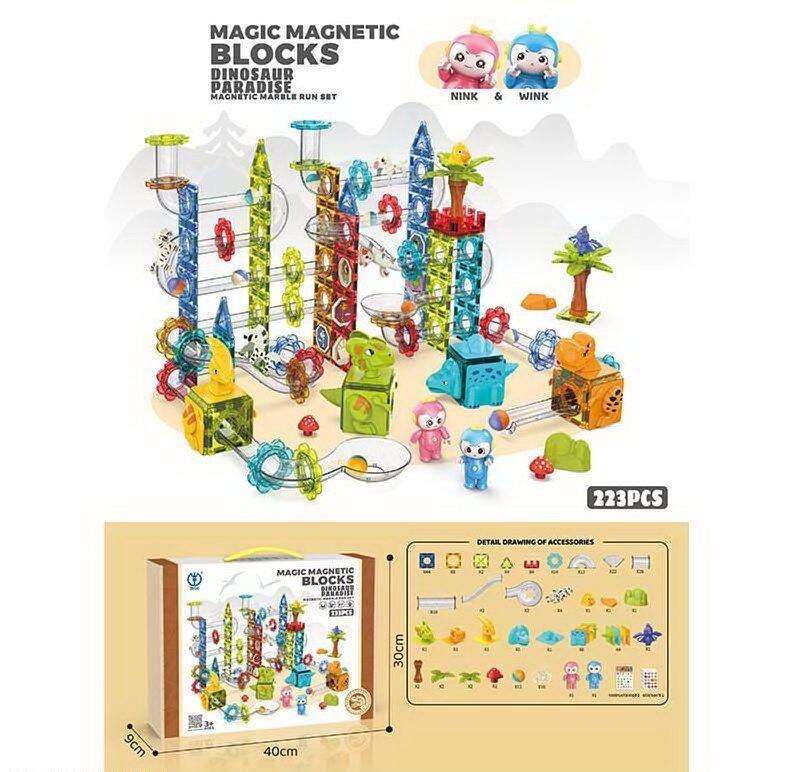 Настоящее чудо для маленьких изобретателей! С помощью волшебных магнитов можно создавать самые разные конструкции. Блоки легко присоединяются друг к другу благодаря сильным магнитам, что делает игру легкой и увлекательной. Разнообразие форм и элементов поражает, а игровые шарики прекрасно дополняют этот набор. С таким магнитным конструктором никогда не будет скучно, и всегда можно пробовать что-нибудь новое. Особенности: - конструктор содержит 223 детали; - магнитный принцип соединения; - интересные и необычные формы элементов; - в комплекте дополнительно идут наклейки; - сбор конструктора способствует развитию мелкой моторики, творческого мышления, воображения. Размер упаковки: 40 см × 9 см × 30 см Упаковка:Коробка Возраст: от 3 лет