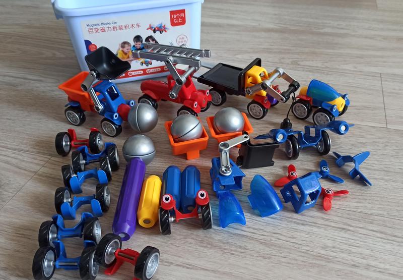 Продам магнитный конструктор с металлическими пулями на 56 деталей в боксе, состояние хорошее. Есть некоторые нюансы, так как был одним из любимых у своего сына, есть некоторые потертости, все показала на фото. Не критически, на игру не влияют. Трос был обрывным, связали на узел, держится хорошо. Магнитится все также хорошо. Из 56 детали нет только одной (ще один ковш отсутствует).