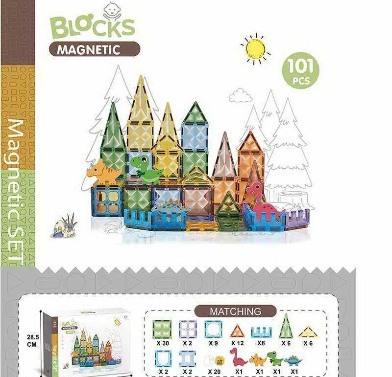 Магнитный конструктор "динозавровый парк" ch 1209, 101 деталь, 4 фигурки динозавров, в кра...