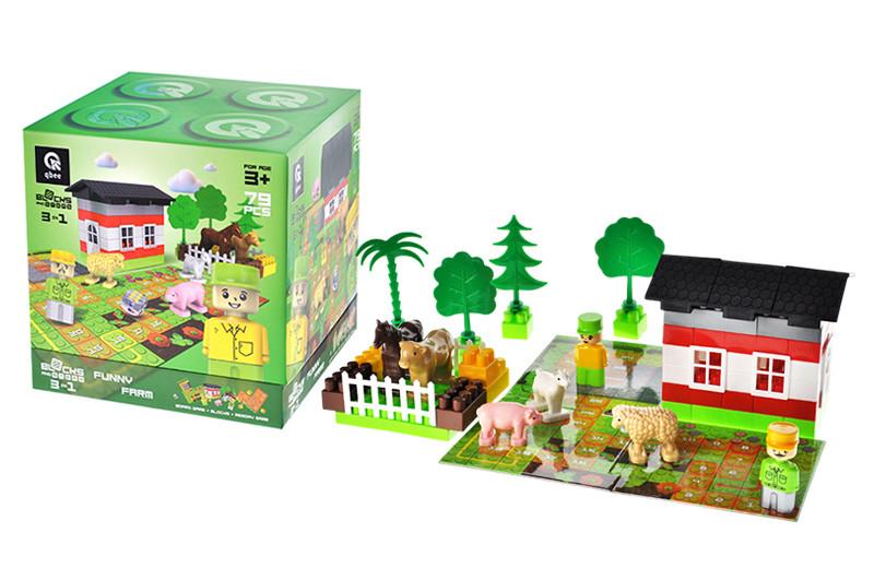 Конструктор "block&steps: весела ферма" + ходилка і меморі гра 3в1, 79дет. qb300-005 qbee