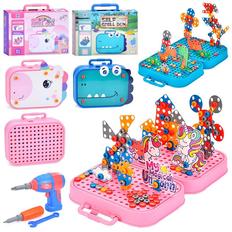 Развивающая детская мозаика конструктор с шуруповертом 3d модели животных 228 деталей чемо...