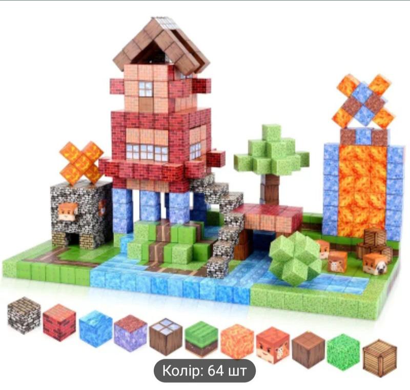 Магнітний конструктор 64 деталі у стилі minecraft | подарунковий набір "створи свій світ"...