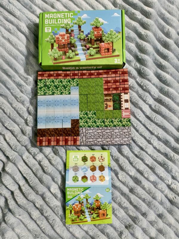 Конструктор магнітний майнкрафт 100 блоків Набір включає в себе 100 блоків Мішечок для зберігання Трьох випадкових чоловічків Фірмову коробку Чудовий подарунк для дитини