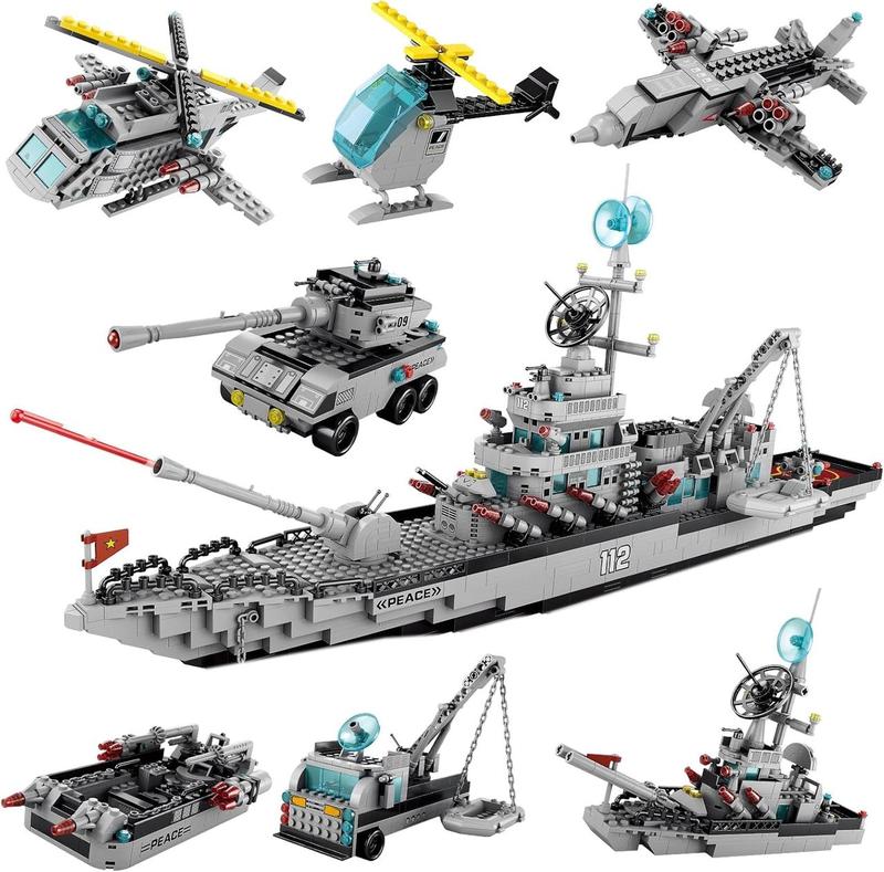 Игрушка для строительства военного корабля Sitodier, набор для строительства корабля Cruiser Ocean Boat из 1412 деталей для мальчиков от 8 лет, набор кубиков для строительства морского боя для детей в возрасте 8, 9, 10, 11, 12, 13, 14 лет Об этом товаре - Игрушка для сборки военного корабля 6 в 1 - Игрушка для сборки, которая включает в себя 1412 деталей, может быть собрана в большой военный корабль и вертолет или 6 маленьких моделей, включая морской истребитель, военный вертолет, тяжелый бронированный танк, спасательную машину, фрегат с управляемыми ракетами и патрульный корабль с управляемыми ракетами. Дети старше 6 лет, любящие военную тематику, будут в восторге от нее - Гениальный дизайн - переключите переключатель, и ракетная пусковая установка на носу корабля может запускать ракеты. Приемник сигнала в середине лодки. Корма корабля оборудована краном для подъема спасательной лодки, а также фартуком для парковки вертолета. Также имеется связь, которая управляет направлением ракетных портов путем переключения руля на корме. Эти умные детали делают эту игрушку-линкор еще более играбельной - Развитие и игра - набор для строительства военного корабля может отвлечь детей от мобильных игр и электронных экранов и позволить им действительно сосредоточиться на том, чтобы делать что-то одно хорошо. При сборке они получат некоторые знания о военных моделях и принципах строительства, и будут более креативными и сосредоточенными. Отличный набор для строительства для детей, которые любят военное дело и строительство - Совместимость со всеми основными брендами - строительные блоки Sitodier разработаны в соответствии с универсальными стандартами и совместимы с вашими существующими фирменными строительными игрушками. Когда вы строите модели, все детали легко собираются и плотно прилегают. Дети могут построить 7 различных моделей в соответствии с руководством или использовать свое воображение для создания других моделей - Tips- Sitodier Military Battleship Building Block Toy изготовлен из высококачественного АБС-пластика, с высоким уровнем безопасности, прочный и долговечный, без запаха. Описание продукта Sitodier 1412 шт. Большой набор для строительства морского боя Возможно, у каждого ребенка есть мечта о военной карьере, и он/она будет очень удивлен, когда увидит эту серию строительных блоков военного корабля. Всего 1412 кубиков. Из него можно построить большой военный корабль и вертолет или 6 маленьких моделей, включая морской истребитель, военный вертолет, тяжелый бронированный танк, спасательную машину, фрегат с управляемыми ракетами и патрульный корабль с управляемыми ракетами. Это идеальная образовательная игрушка для детей в возрасте 8, 9, 10, 11, 12, 13, 14 лет. Дополнительные преимущества: -Совместим со всеми основными брендами. -Устойчивые конструкции, легко возводимые. - Безопасные и качественные материалы, без запаха, без отсутствующих углов. -Большие размеры линкора, более сложная конструкция, большая сложность. -Игра и развитие. -Больше времени для взаимодействия родителей и детей. -Держите детей подальше от экранов. -Яркие наклейки. -Упаковка подарочной коробки. Идеальный подарок для детей, которые любят военное дело и строительство Игрушка-конструктор «Модель морского боя» станет прекрасным подарком на праздник или день рождения для мальчиков в возрасте от 8 до 12 и от 8 до 14 лет. Пособ