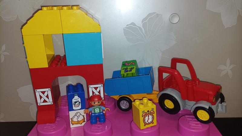 Lego Duplo Сельскохозяйственный трактор и уход за животными Конструктор LEGO DUPLO Town Farm Tractor позволит малышу стать настоящим фермером, придумывая различные игровые ситуации и знакомясь с различным фермерским прибором. 26 — именно столько пластиковых деталей необходимо, чтобы почувствовать себя в роли фермера. Детали не боятся царапин, деформации и других неприятностей, более того, они имеют увеличенный размер, поэтому малыш не сможет случайно проглотить.