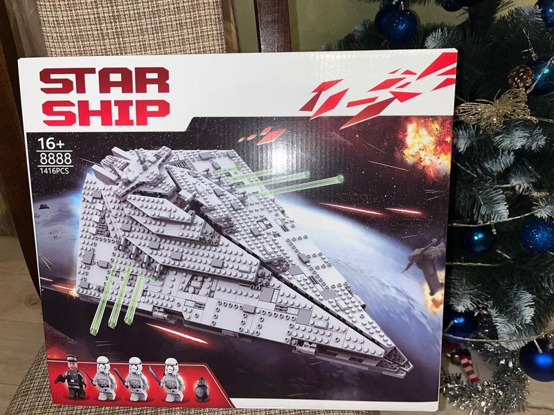 конструктор Star Wars 75190 "First Order Star Destroyer" Пориньте у світ "Зоряних війн" разом із LEGO Star Wars 75190 "Зірковий Руйнівник Першого Ордену"! Ця деталізована модель культового зорельота Першого Ордену дозволить відтворювати найвідоміші битви з кіноепопеї Star Wars. Завдяки реалістичному дизайну та рухливим елементам цей набір стане справжньою окрасою колекції будь-якого фаната "Зоряних війн". Особливості набору: Розкішна деталізація: Зовнішній вигляд корабля максимально наближений до оригінального "Зіркового Руйнівника" з фільму "Останні Джедаї". Відкидний верхній відсік: Доступ до деталізованої кабіни з командним містком, екранами управління та місцем для мініфігурок. Рухливі гармати: Вбудовані шутери та рухомі турелі для відтворення космічних битв. Ручка для перенесення: Зручна вбудована ручка робить корабель мобільним і дозволяє легко переміщати його під час гри. Мініфігурки: В комплекті 6 фігурок – Сноук, Офіцер Першого Ордену, Штурмовики, а також BB-9E. Характеристики набору: Кількість деталей: 1416 шт. Рекомендований вік: 9–14 років. Розміри моделі: Довжина: ≈ 56 см Ширина: ≈ 32 см Висота: ≈ 16 см Кому підійде цей набір? ✔ Фанатам Star Wars, які хочуть відтворити епічні битви. ✔ Колекціонерам ,що збирають серію Star Wars. ✔ Юним конструкторам, які полюбляють складати великі моделі. З Star Wars "First Order Star Destroyer" ви зможете очолити флот Першого Ордену та розпочати власну галактичну пригоду