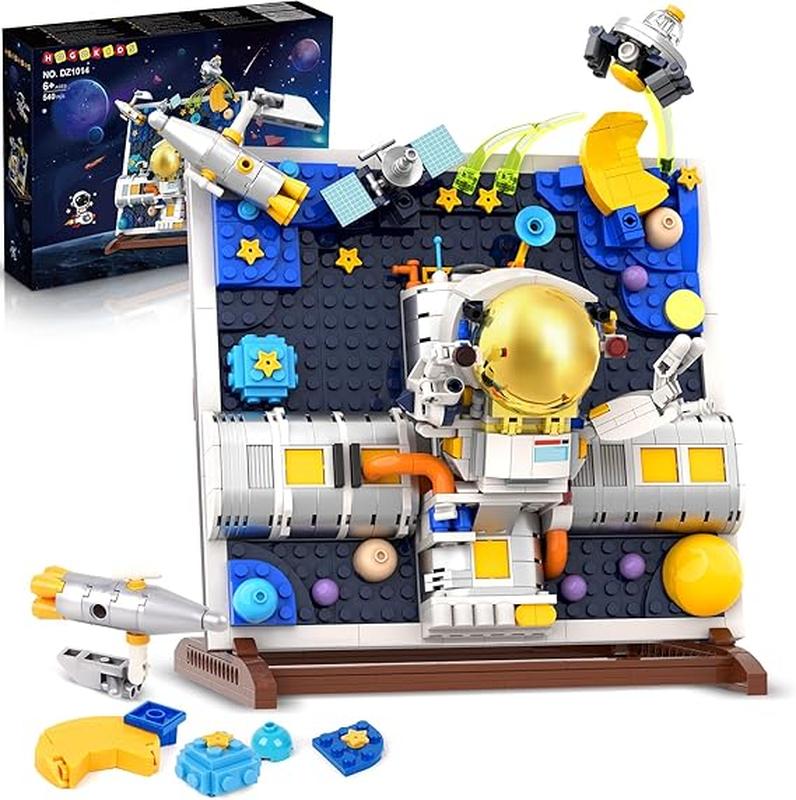 HOGOKIDS Космический конструктор - набор из 540 строительных блоков «Астронавт» с подставкой ФАНТАСТИЧЕСКИЙ СТРОИТЕЛЬНЫЙ НАБОР: Этот космический строительный набор содержит множество аутентичных деталей, привлекательные модели звезд, луны, ракеты, космической капсулы и астронавта. Он перенесет мальчиков и девочек в таинственный мир звезд и исследует неизвестные тайны вселенной. ОБУЧЕНИЕ ВО ВРЕМЯ ИГРЫ: Эта космическая игрушка-конструктор астронавт предлагает детям увлекательный опыт строительства и игры. Она вдохновит детей на многочасовые ролевые игры. Эта уникальная космическая игрушка помогает детям сеять семена знаний, чтобы исследовать неизвестное, понимать науку и развивать интерес к обучению и пространственное стереоскопическое мышление. Дети могут узнать больше о космосе, собрав астронавта, ракету, спутник, космическую капсулу. ИННОВАЦИОННЫЙ ДИЗАЙН: Подставка этого конструктора космического корабля также состоит из строительных блоков, угол наклона подставки регулируется. После нескольких часов приятного опыта сборки вы можете выставить готовую красивую космическую рамку в любом месте, которое вам нравится. Этот яркий и яркий цветовой декор пространства придаст вашей комнате приятный визуальный эффект. ВЫСОКОКАЧЕСТВЕННЫЙ МАТЕРИАЛ: Этот удивительный набор строительных блоков изготовлен из высококачественного материала ABS, его размеры составляют 10,2 дюйма (25,9 см) в высоту, 7,6 дюйма (19,2 см) в длину и 6,3 дюйма (16 см) в ширину. Каждый строительный блок красочный, прочный, нетоксичный и не имеет запаха. Красочная инструкция по эксплуатации ясна и понятна, что позволяет и взрослым, и детям получать удовольствие от строительства ТВОРЧЕСКИЙ ПОДАРОК ДЛЯ ДЕТЕЙ: Этот набор на космическую тематику понравится любителям космоса или мечтателям о космосе старше 6 лет.