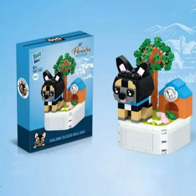 Конструктор блоковый детский фигурка собачка бульдог 208 деталей