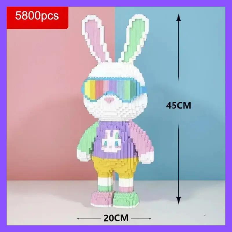 Diy конструктор "кролик в очках" — яркая 3d-модель из микроблоков 5800 шт бирюзово-розовый...