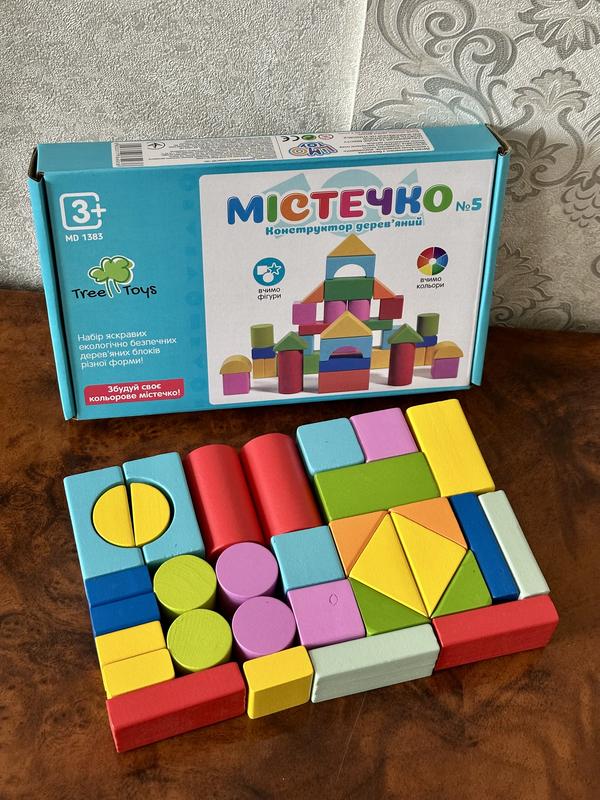 Деревʼяний конструктор Містечко - це набір екологічно безпечних деревʼяних блоків різної форми. В комплекті 32 деталей. Розмір упаковки 23-14,5-3,5 см