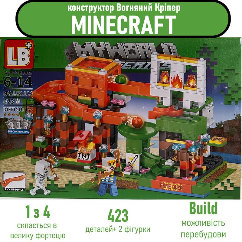 Конструктор minecraft огненный крипер майнкрафт +2 фигурки+набор оружия 423 детали в подар...