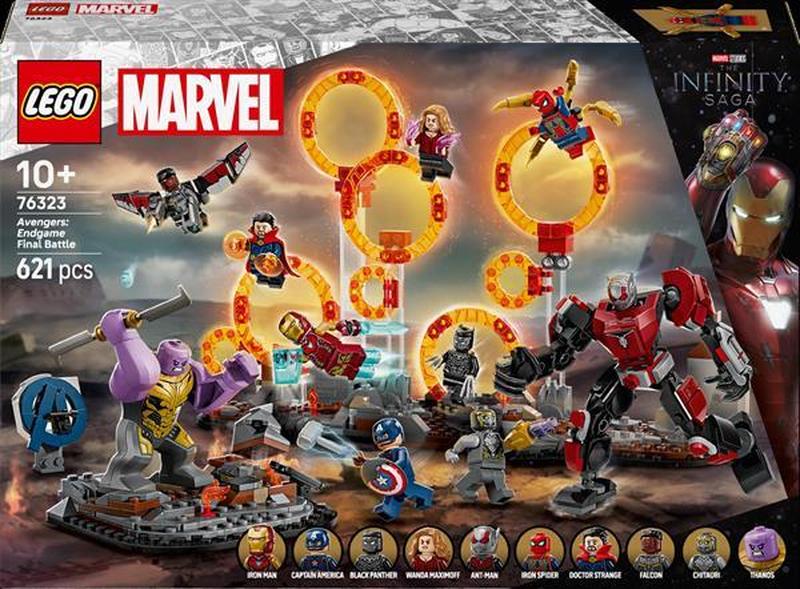 Конструктор LEGO Marvel Мстители Финал Финальная битва 621 деталь — это масштабный игровой набор для фанатов супергероев и фильма Мстители Финал. Он позволяет воссоздать легендарную битву между героями и Таносом, и подарит невероятные эмоции в процессе сборки и игры. Набор включает 9 минифигурок: Капитан Америка, Железный человек MK85, Чёрная пантера, Багровая ведьма, Сокол, Доктор Стрэндж, Человек муравей, Железный паук и воин Читаури. Также в комплекте — большая фигурка Таноса и полностью подвижный робот Человека- муравья. Оружие, порталы, эффект взрыва, крылья, паучьи лапы — всё это делает игру максимально захватывающей. Благодаря 621 элементу дети могут перестраивать сцену, придумывать собственные сценарии и полностью погружаться в мир Marvel. Набор подходит для мальчиков и девочек от 10 лет и станет отличным подарком на день рождения, праздник или в коллекцию.