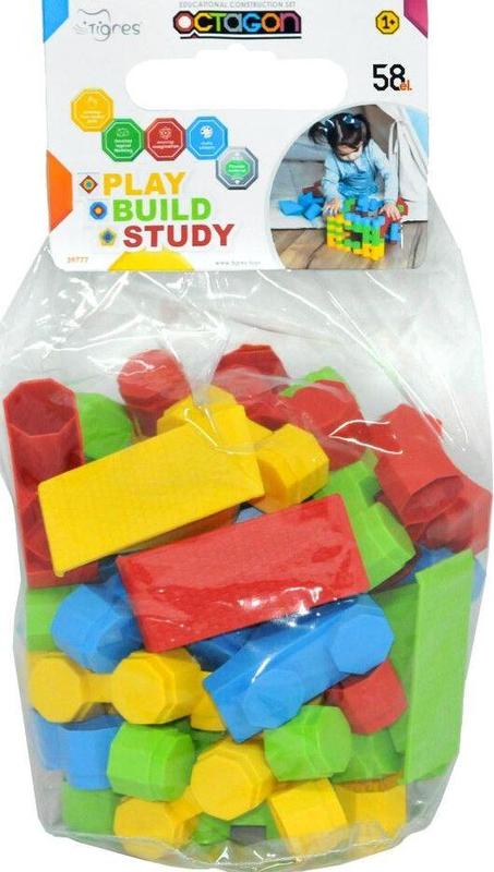 Конструктор "Octagon" 58 эл. в пакете, Tigres – отличный выбор развивающей игрушки для ребенка, изготовленный из эластичного материала. Название развивающей игрушки Octagon происходит от латинского названия восьмигранника, форму которого имеют основы деталей конструктора. Конструктор изготовлен из безопасного высококачественного сырья, отвечающего украинским и европейским стандартам качества. Материал конструктора уникален: это сочетание полипропилена (РР) и термопластического эластомера (TРE), что по своим характеристикам является приятным на ощупь и гибким.