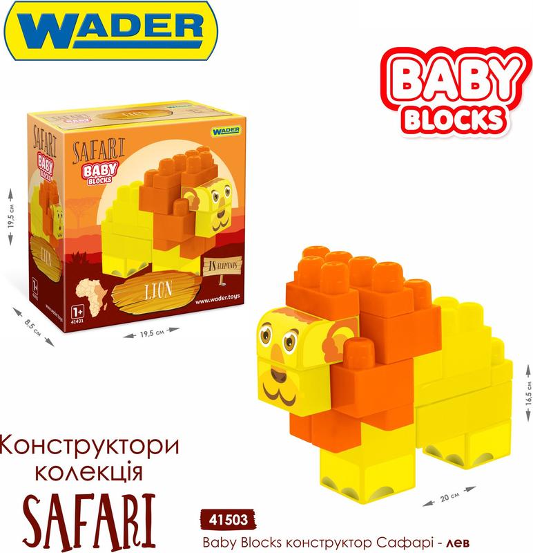 Конструктор Wader Baby Blocks Сафари - это отличный вариант первого конструктора для малыша. Различные цвета и формы, соответствующий и безопасный размер, который подойдет маленьким деткам, а также очень легкая система крепления сделают знакомство с конструктором простым и интересным. С помощью Baby Blocks Сафари ребенок составит своего первого динозавра. Разнообразие элементов создает неограниченные возможности для игры - их можно не только складывать, но и также придумывать удивительные истории с их участием. Каждый набор можно использовать отдельно или собрать целую коллекцию и окунуться в фантастическую историю. В наборе Сафари Лев - 18 цветных кубиков, которые позволят построить фигурку этого животного. Игра конструктором Baby Blocks фирмы Wader развивает воображение и креативность ребенка, его мануальные способности, точность движений и зрительно-двигательную координацию. Цветные элементы помогут в изучении основных цветов, а также их можно применить для первых уроков счета. Кроме строительства, интересным занятием для малыша может быть сортировка кубиков по цвету или форме, вброс и извлечение их из / в коробку. Все элементы изготовлены из высококачественных сертифицированных безопасных материалов. Особенности. В набор входят наклейки, а также инструкция для составления Очень легкая система монтажа Изготовлен из высококачественных безопасных сертифицированных материалов Для детей от 1 года Размеры одинарной фишки: Ширина - 2 см Глубина - 2 см Высота узкой основы - 1.5 см (полностью - 3.2 см) Высота широкой основы - 3 см (полностью - 4.7 см) Габариты упаковки 20 х 20 х 9 см.