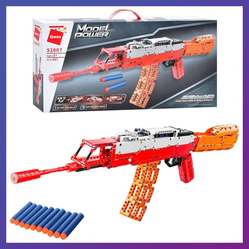 Детский конструктор qman 52007 автомат на мягких пулях 587 деталей