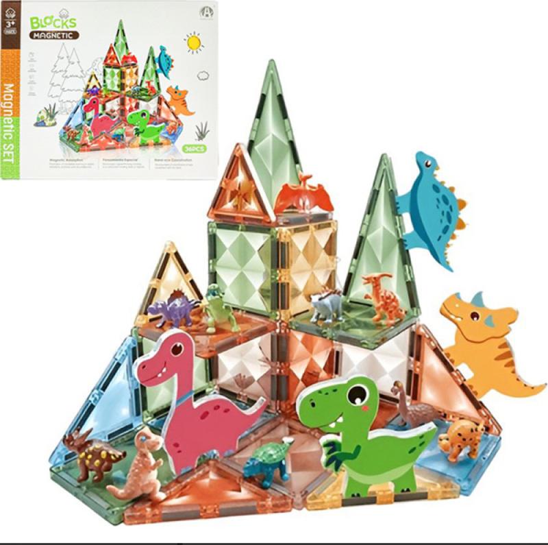 Конструктор магнітний magnetic diy 36 елементів динозаври різнокольоровий