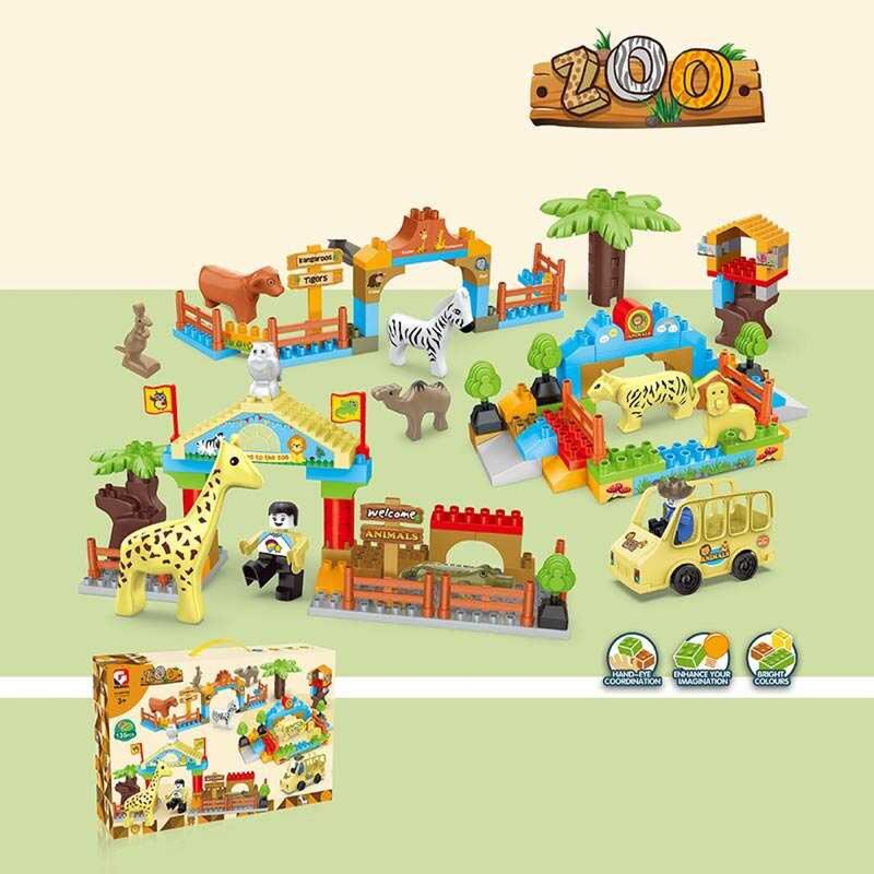 Конструктор "Зоопарк" HJ 35015 B, 135 деталей, 2 фігурки людини, 9 фігурок тварин, машинка, аксесуари, в коробці В комплекті: елементи конструктора,2 фігурки людини, 9 фігурок тварин, авто, аксесуари, наклейки, інструкції. Деталі великого розміру мають пазове кріплення. Зоопарк складається з трьох зон проживання тварин, вони робляться за їхнім місцем проживання: перша зона - збирається за 7 кроків; друга зона - збирається за 8 кроків; третя зона збирається за 8 кроків. Будиночок сови збирається за 6 кроків. Весь парк збирається за 29 кроків із 104 деталей. Для більшого комфорту переміщення територією зоопарку в комплект входить машинка. Всі ігрові елементи виконані з первинного пластику та пофарбовані високоякісними фарбами. Кількість деталей: 135 елементів. Розмір упакування: 46х11х31 см. Упаковка: картонна коробка. Від 3-х років