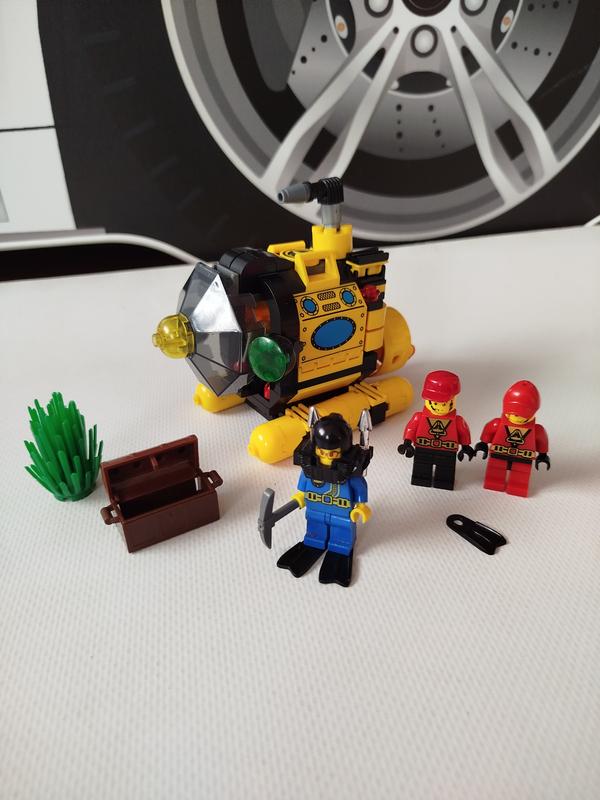 Подводная лодка кладоискателей. Раритет, набор 2012 года, сейчас снят с производства, коллекционный экземпляр. Состояние отличное, заменено стекло батискафа. Кладу дополнительно красного человечка в подарок. Инструкция на фото. Коробка отсутствует. Желто-черный батискаф с 2 минифигурками – человечком и водолазом в полном обмундировании для погружений на глубину, у лодки открывается передняя часть и боковые части, внутри батискафа находится сундук с сокровищами, набор дополняет зеленый куст водорослей.