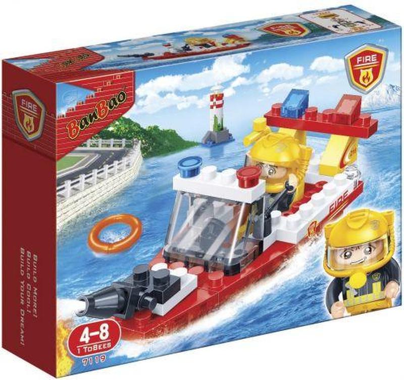Детский пластиковый конструктор пожарный катер "пожарники", 62 деталей