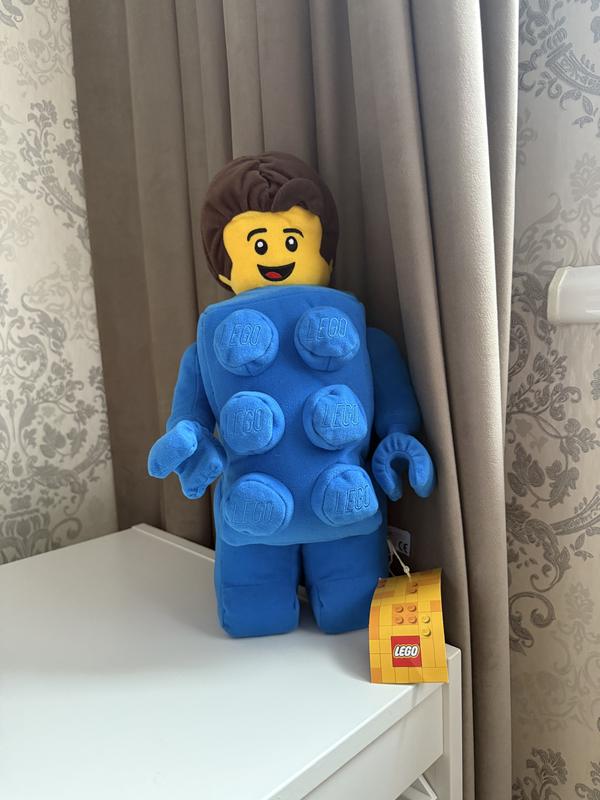 плюшева іграшка LEGO Minifigure Brick Suit Boy. Іграшка має висоту приблизно 33 см .Має м'яке тіло та плоскі стопи, що дозволяє їй стояти вертикально на полиці як предмет декору. Також в наявності є плюшева іграшка Lego Fox. Ціна - 850грн