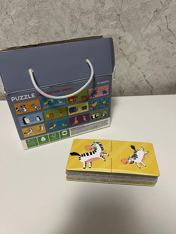 У наборі 12 окремих пазлів. Пазли містять зображення різних тварин та їхніх дитинчат, з'єднаних разом. Призначений для дітей, щоб допомогти їм вивчити тваринний світ, розвинути моторику та логічне мислення.