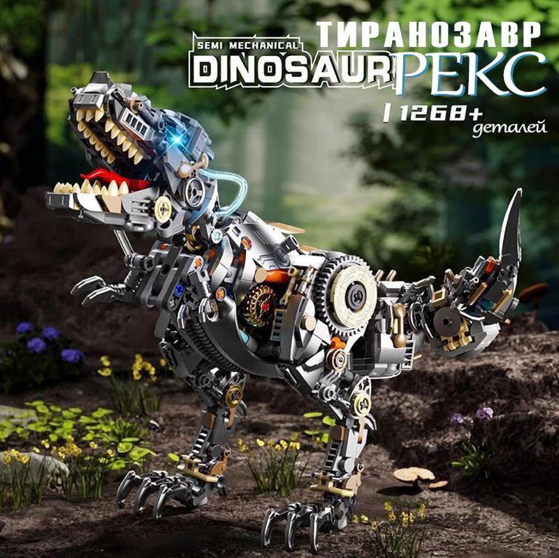 Механічний конструктор «Тиранозавр Рекс» -- 1268+ деталей для справжніх інженерів юрського періоду! Зберіть власного кібернетичного динозавра! Цей детальний конструктор поєднує естетику доісторичної сили з сучасною механікою. Тиранозавр Рекс має понад 1268 елементів, включаючи рухомі щелепи, лапи та хвіст, а також світлові елементи для ефектного вигляду. - Розміри моделі: 36×21×22 см -- ідеально для демонстрації - Мультифункціональні шарніри: частини тіла рухаються, створюючи реалістичну позу - Футуристичний дизайн: поєднання шестерень, механічних з'єднань і біолюмінесцентних деталей - Декорації в комплекті: лісова сцена для атмосферної презентації - Фанатам динозаврів, робототехніки та STEM-конструювання - Колекціонерам та творцям LEGO-подібних моделей - Дітям 10+ та дорослим, які люблять складні проєкти