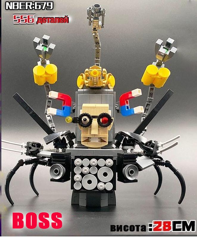 Вчений - Toilet" -- це персонаж із популярного інтернет-мему . Цей серіал створений у стилі абсурдного гумору, де різні персонажі, включаючи "Титанів", борються з монстрами, які мають вигляд туалетів. "Вчений - Toilet" є одним із таких вигаданих героїв туалетів, що додає ще більше комічності та сюрреалізму до серіалу. Конструктор "Вчений - Toilet", збирається з 677 деталей, має близько 220 мм висоти. Зібрані фігури мають рухливі елементи, і після складання можуть бути включені до подальших ігрових сюжетів. З конструктором ("Вчений - Toilet") ви зможете втілити в життя захоплюючі пригоди та створити свої власні історії, беручи участь у боротьбі між Туалетами та Агентами, а також додати елементи гумору до своєї колекції іграшок. У комплекті представлені докладні інструкції зі складання, які зроблять процес навчання цікавим та наочним. чним.