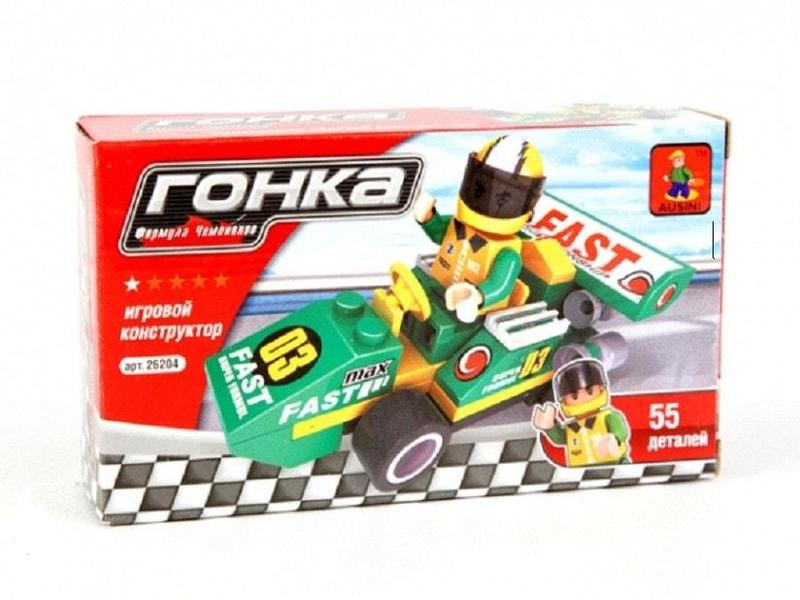 Конструктор Ausini 26204 серии Гонка. Собирается гоночный автомобиль и фигурка гонщика. В наборе 55 деталей. Уровень сложности: легкий. Размер упаковки: высота - 6,5 см., ширина - 4,5 см., длина - 10 см.. Этот конструктор и многие другие детские игрушки вы можете купить в интернет- магазине "Плюшево с доставкой по всей Украине.