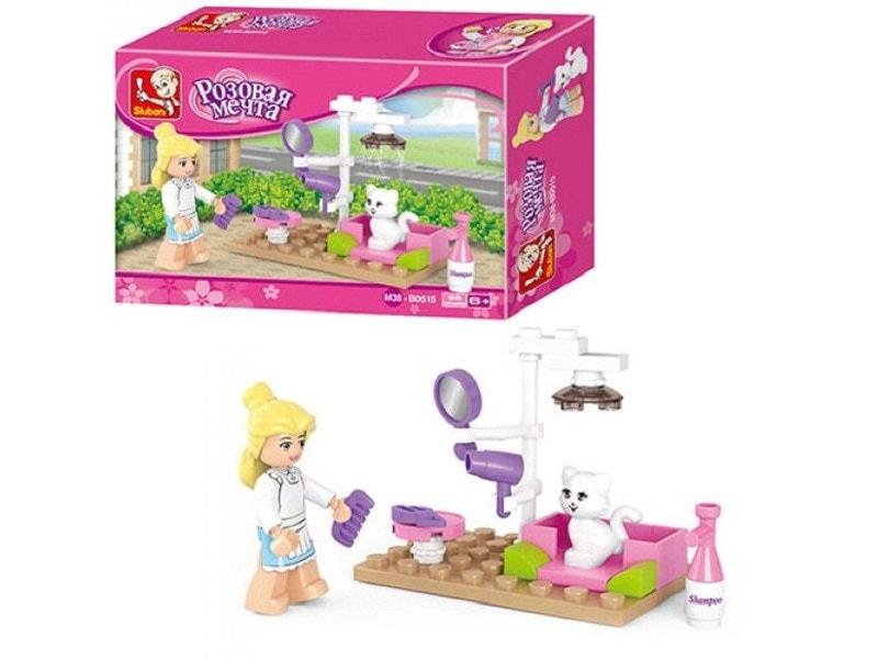 Конструктор специализированного салона красоты, в котором расчёсывают и подстригают животных. В комплекте предоставляется девочка с белыми волосами, белая кошечка и необходимое для салона красоты оборудование, мебель, светильники фены и т.д. Купить Конструктор Розовая мечта Салон красоты для животных можно в нашем магазине игрушек "Плюшево".