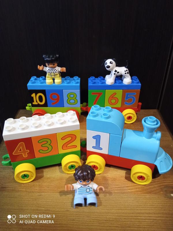 Конструктор, лего дупло, поезд с цифрами,обучение счету, фигурка собака , для воска,мальчи...