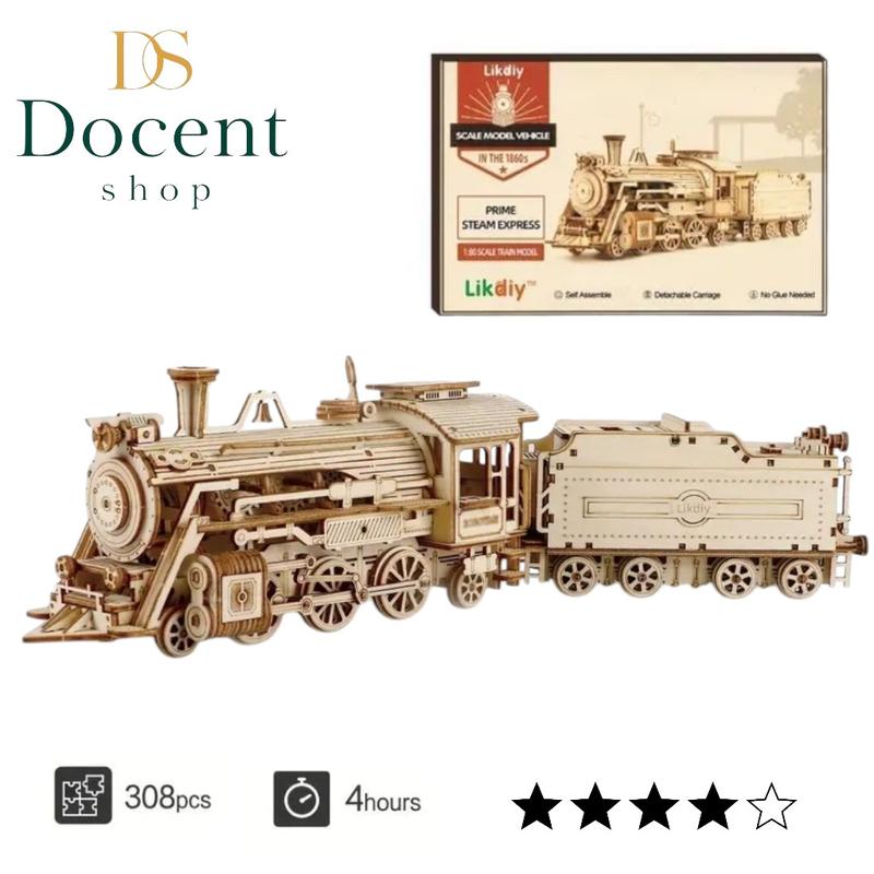 Деревянный 3d-конструктор "паровой поезд" – механическая масштабная модель пазл без клея.