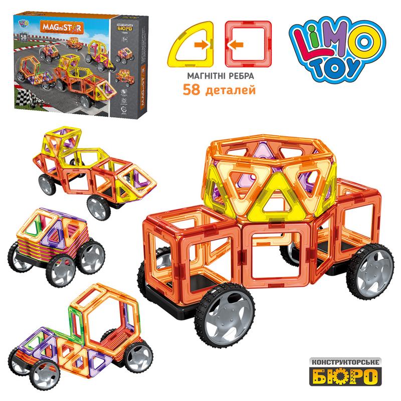 Детский магнитный конструктор 58 детали,развивающая игрушка для создания машинок