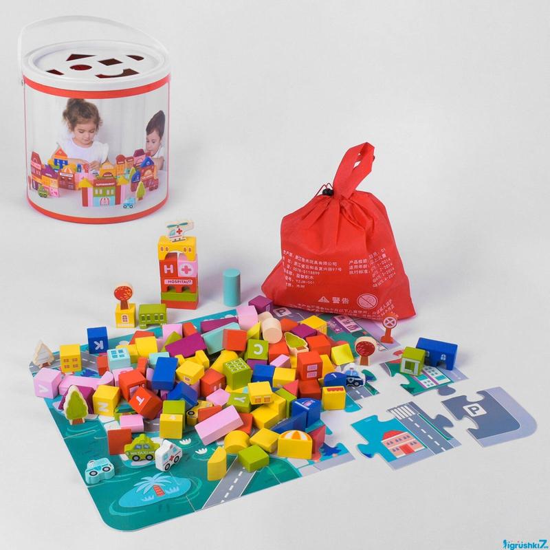 Деревянный конструктор в 33491 (12) 115 деталей, в ведредеревянный конструктор из разноцве...