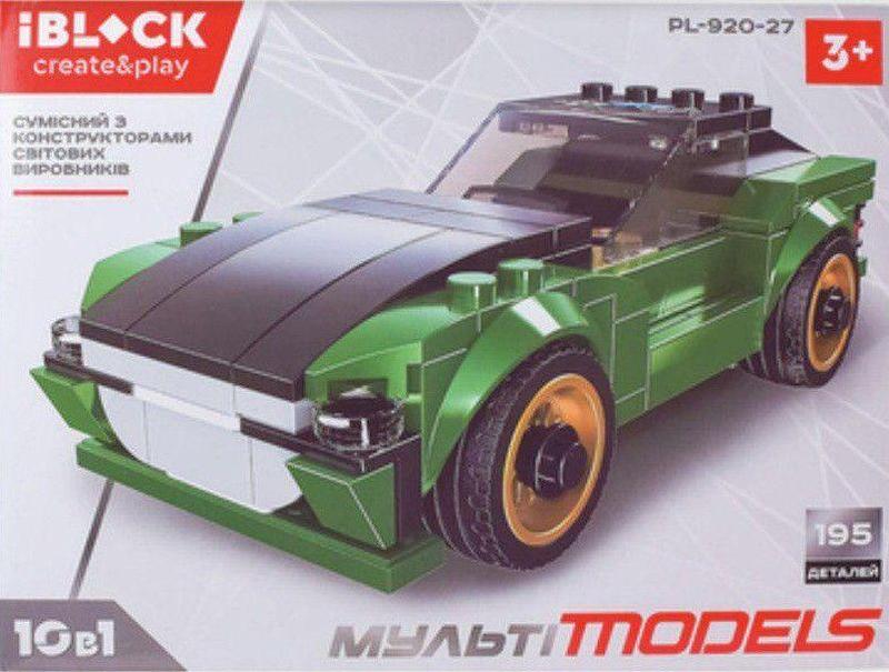 Конструктор для детей зеленая машинка iblock 10 в 1