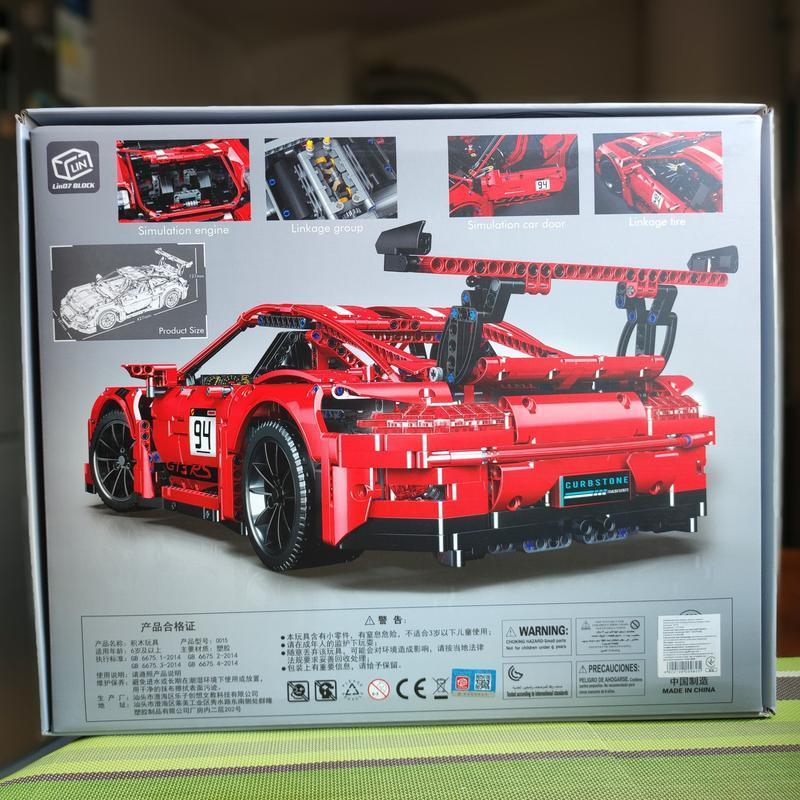 Конструктор Technic 0015 Porsche 911 GT3 RS этот уменьшенный вариант спортивного автомобиля разработан в сотрудничестве с инженерами изготовителей настоящей модели. Именно эту модель можно собрать из деталей данного конструктора. подробную инструкцию. Готовый суперкар получается отлично детализированным и максимально точным. внешним видом. Игровая модель Porsche 911 буквально отображает образ машины. Она поражает: превосходными аэродинамическими кузовными свойствами, колесными дисками, низкопрофильными шинами, отличными тормозами, двигателем с функционирующей поршневой системой. Набор состоит из 2718 деталей. Размер собранной модели 43*19*13 см. Размер коробки 50*11*32 см