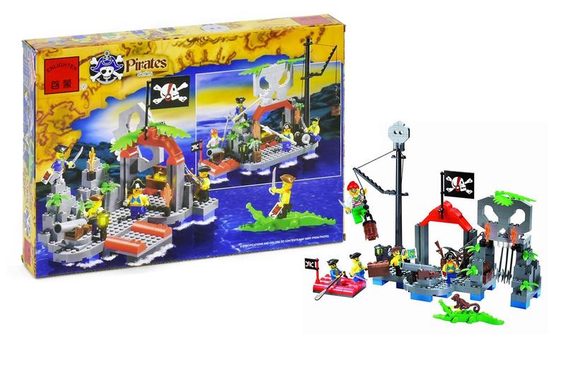 Пиратский конструктор "Гамлет". В наборе предоставлено аж 5 кровожадных пиратов, включая капитана, а также интересная бухта в форме черепа. В комплект конструктора входят пушки, карты, аллигаторы, сундуки с сокровищами и чёрный флаг с весёлым роджером.