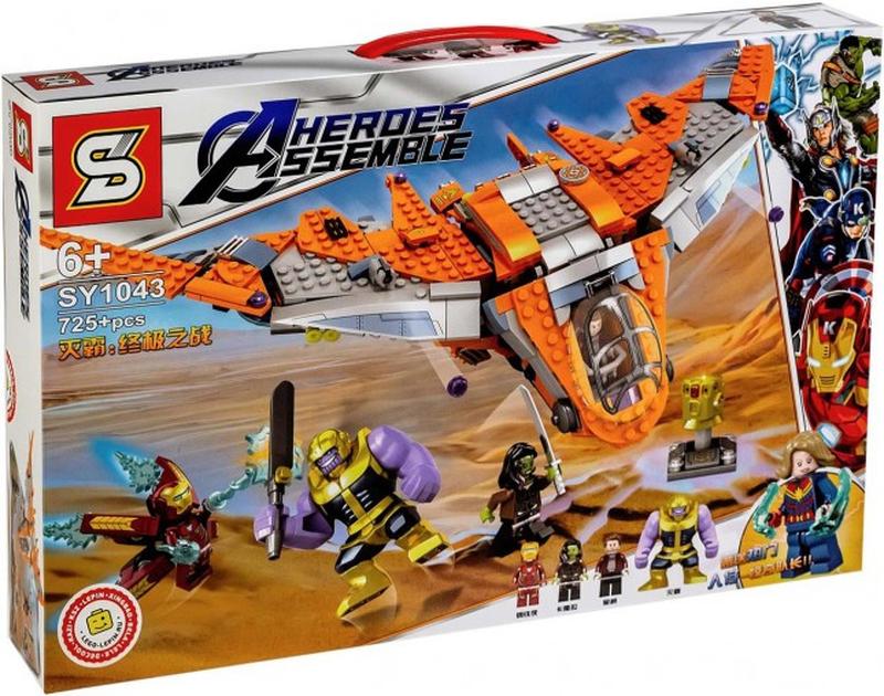 Конструктор «Танос — последняя битва» от Sheng Yuan принадлежит серии Heroes Assemble и полностью совместим с Лего, состоит из 725 деталей и является качественным аналогом популярного конструктора Лего 76107 «Thanos: Ultimate Battle». Набор включает 1 фигурку суперзлодея: Таноса и 4 минифигурки супергероев: Железного Человека, Гаморы, Звездного Лорда и Капитан Марвел. Также в набор входят детали для постройки космического корабля «Милано», перчатка бесконечности, огромный меч Таноса, бластеры Звездного Лорда, броня Железного Человека, меч Гаморы. Наш мир снова в опасности, и спасти нас могут только Мстители