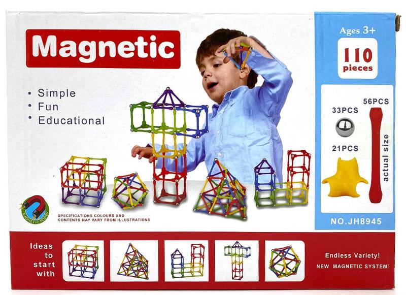 Для маленьких поклонников игры с Магнитным конструктор Magnetic станет отличным подарком. Внутри пластиковых контуров деталей находятся магниты. Детали выполнены в виде палочек и шариков, а также дополнены соединительными элементами. Детали можно использовать многократно и без особых усилий. Детали разноцветные и прочные. Из простейших геометрических фигур можно составлять объемные фигуры. Конструктор магнитный - головоломка развивает абстрактное мышление, снимает стресс, развивает воображение и логику. Размер коробки 24*4*17 см Количество деталей: 110 штук шарика 33 штук палочек 56 штук соединительных элементов 21 штук