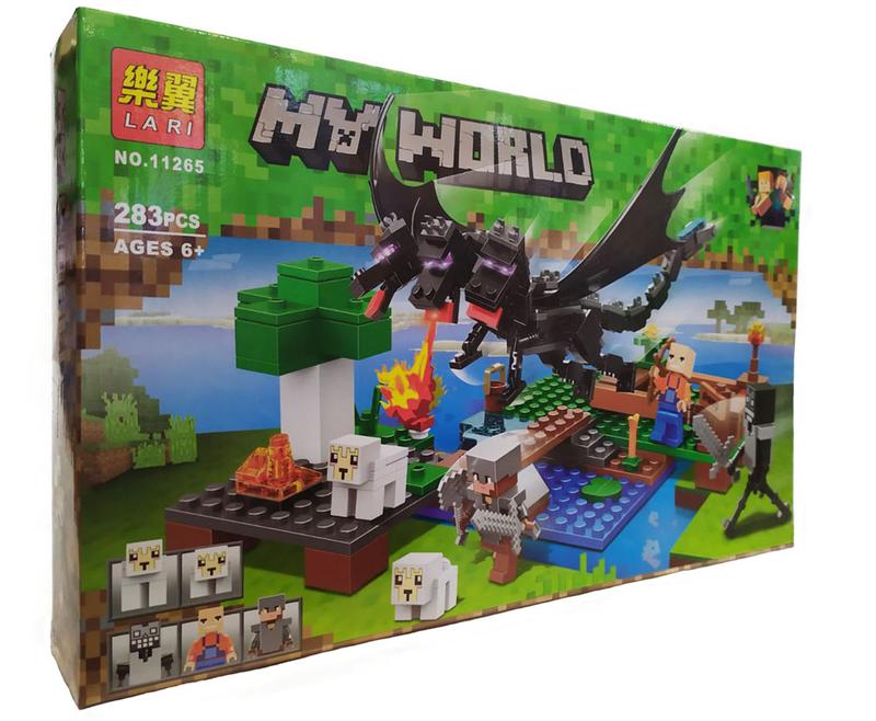 Детский конструктор Майнкрафт состоит из 283 деталей. Вам предстоит собрать участок из мира minecraft с опасным мобом трехглавым черным драконом. Кроме того в комплект входит: 1. Две стриженные овечки. 2. Стив 3. Адский скелет. 4. Фермер.