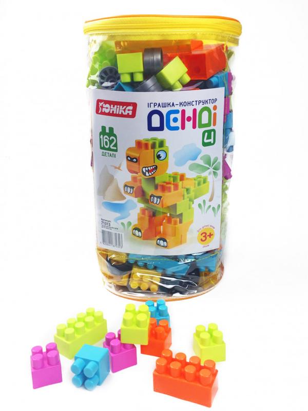 Увлекательный детский конструктор „ДЕНДИ”- 4 (171 дет.) 71313 – замечательный подарок для любознательных почемучек, которым будет интересно из 171 элемента самостоятельно построить что-нибудь необычное. Интересная развивающая игра для детишек возрастом от трех лет содержит все необходимое, благодаря чему Ваш любознательный малыш сможет собрать целую коллекцию для строительства машинок, зданий и даже целого игрушечного города. Внимательно подбирая детальки по цвету и форме, ребенок развивает усидчивость, логику, мелкую моторику, учится быть аккуратным и доводить начатые дела до конца. Тематический конструктор ДЕНДИ – это красочный набор, разработанный из прочного, экологически безопасного пластика, который практически не имеет запаха, поэтому Вы можете быть уверены, что такая забава не причинит вреда Вашему карапузу. Юному изобретателю будет интересно собирать каждую деталь, подбирая элементы по размеру, цвету и форме, одновременно развивая ловкость рук, сенсорику, логическое и образное мышление.