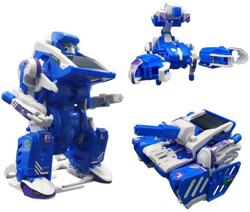 Конструктор на солнечной батарее Solar Robot 3 в 1 новинка в нашем онлайн -- магазине. С деталей конструктора Вы можете собрать танк, скорпиона или стандартного робота. Но замечательной особенностью этой игрушки является наличие источника питания работающего на солнечной энергии, поэтому этот конструктор может быть использован в образовательных целях, для знакомства детей с солнечной энергетикой. Игрушка очень наглядно демонстрирует действие солнечного света, под лучами которого механические игрушки оживают и начинают перемещаться. Будучи роботом, танком или скорпионом, трансформер воспринимает только яркие прямые солнечные лучи. В помещении Вы сможете питать его с помощью галогенной лампы. Это удивительная вещь поможет скоротать Вам время, а также поможет развить воображение и кругозор Вашим детям, которые интересуются, как это работает. Изучайте науку и воспитывайте юных инженеров вместе с конструктором Solar Robot 3 в 1. В комплект входят 15 элементов, из которых нужно собрать механизм и подсоединить солнечную батарею. Размер коробки 26 * 5 * 19 см.