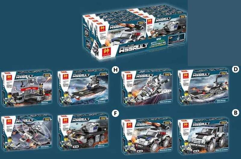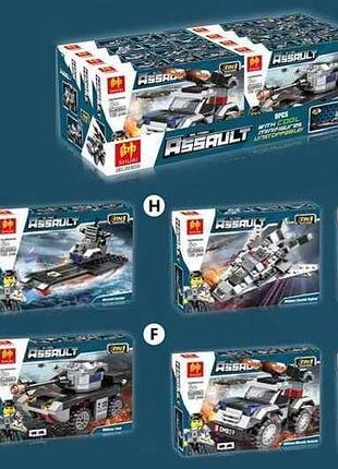 Конструктор 8011 "Бойова техніка 8в1" (8 коробок в блоці) Конструктор 8011 War border stuggle Бойова техніка 8в1 : Тип кріплення - пазовий Мінімальний вік - 6 років Кількість наборів конструкторів: 8 шт Кількість деталей: 95-111 шт Упаковка: у коробці Розмір упаковки: 47 х 18 х 8 Блоковий конструктор "War border stuggle" - захоплива іграшка, здатна перетворюватися у могутню військову техніку. Збери всі 8 різновидів конструктора та трансформуй їх у 3 надпотужні військові об’єкти: авіаносець, військовий літак або крутого робота. - відмінна деталізація та рухомі елементи; - спецтехніка забарвлена у сіро-чорне поєднання кольорів; - блоковий набір представлений 8-ма конструкторами; - всі ігрові елементи виготовлені із первинної пластмаси.