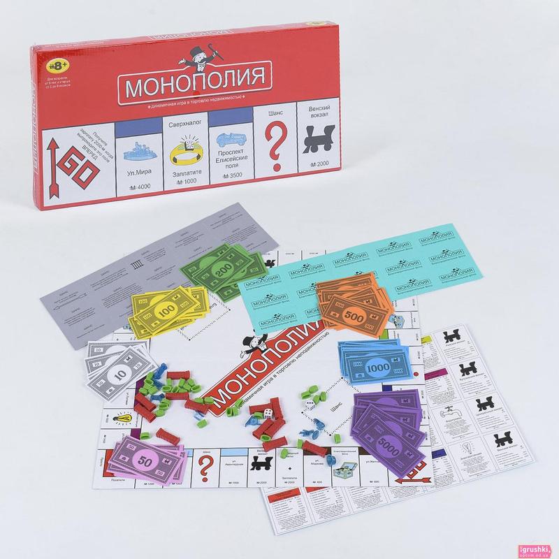 Экономическая и стратегическая игра монополия - легенда среди настольных развлекательных игр! Модель 338 представляет собой классическую карту, которая выполнена в минималистичном стиле и подходит для игроков от 8-ми лет. Карта выполнена из плотного картона и оснащена глянцевым покрытием. Игровое поле насчитывает круг из 40 клеток. Дополнительно есть место под карточки шанс и благотворительный фонд. В данной игре Вам предстоит скупать улицы, и также Вы сможете обзавестись вокзальной станцией и электроэнергией. В комплект входят оригинальные фишки в форме лошадки, туфельки, наездника, шляпы, пушки и машинки. Комплектация: - игровое поле; - 8 жетонов; - 28 карточек на собственность; - 15 карточек шанс; - 15 карточек благотворительный фонд; - 32 дома; - 12 отелей; - 2 кубика.