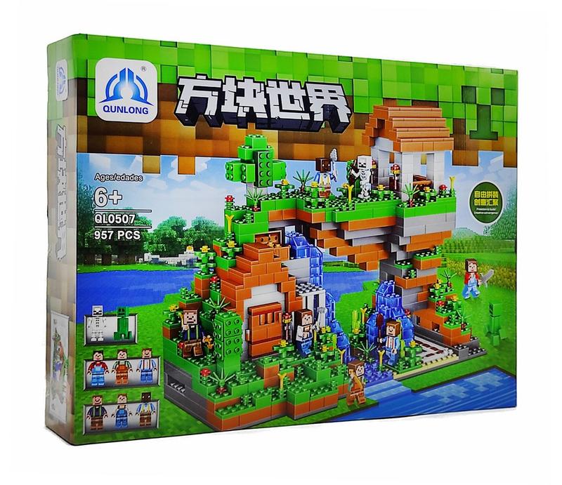 Конструктор созданный по компьютерной игре minecraft и состоит из 957 мелких деталей. Ребенку предстоит собрать: - красивый домик на дереве с водопадами; - шесть мини фигурок жителей деревни майнкрафт; - скелетона; - Крипера.