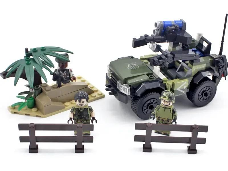 Конструктор фигурки человечки военные спецназ swat солдаты с джипом пво в коробке 183 дета...