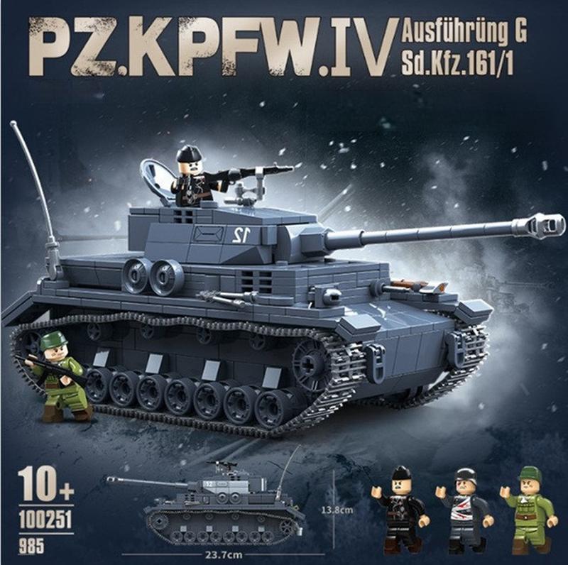 Военный конструктор немецкий танк Pz IV вторая мировая война + солдаты в коробке (985 деталей)