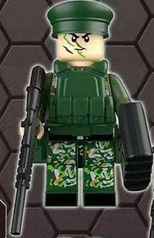 Конструктор фигурка военный спецназовец офицер в зеленом камуфляже в фуражке с оружием